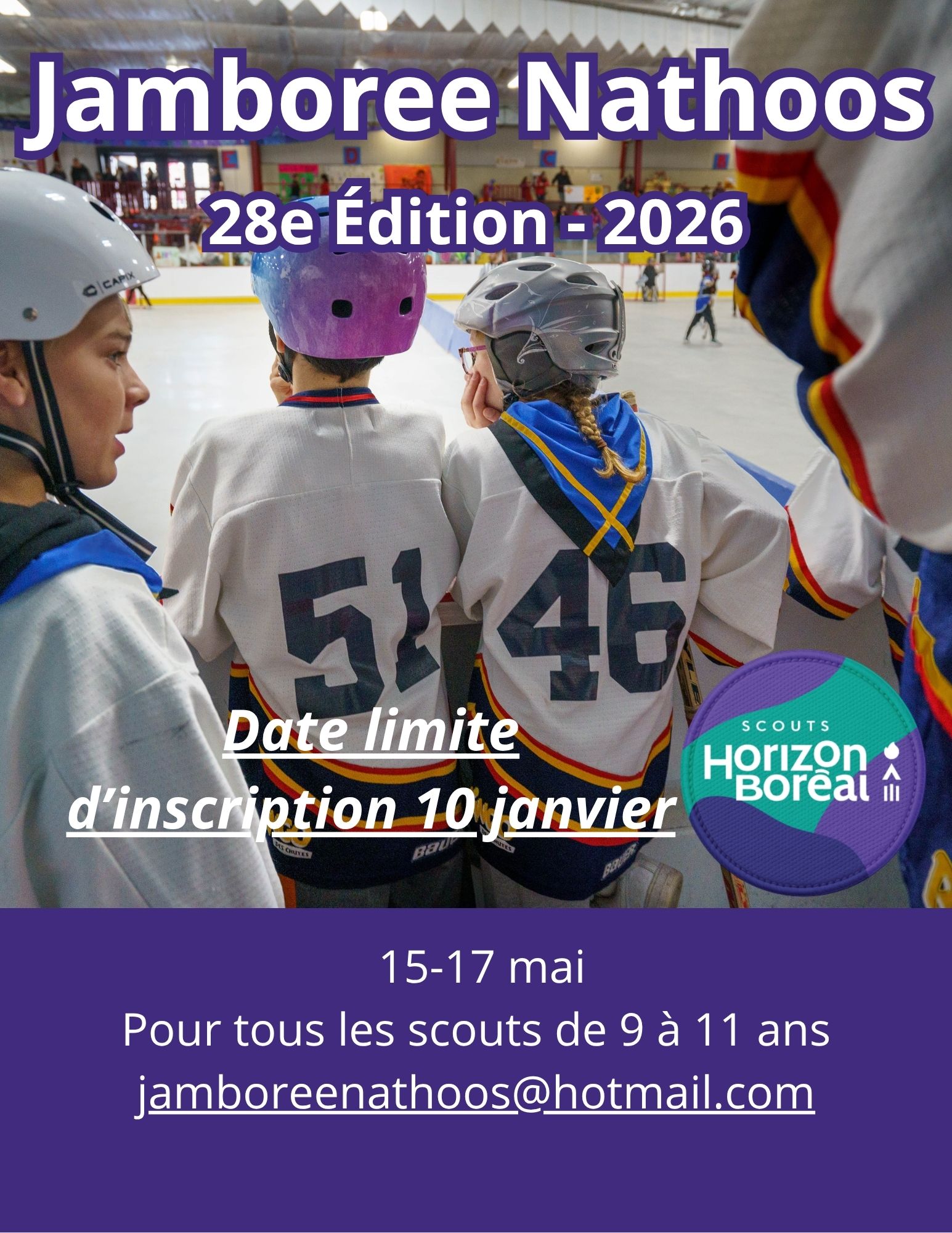 Les scouts du District Horizon Boréal sont fiers de vous inviter à la 28e édition de son jamboree provincial louveteaux, sous la thématique Mission Impossible, qui aura lieu les 16-17 mai 2026 à l’aréna Michel-Labadie (nous avons dû changer nos dates puisqu’il n’y avait aucune disponibilité dans les arénas de la ville à nos dates habituelles).